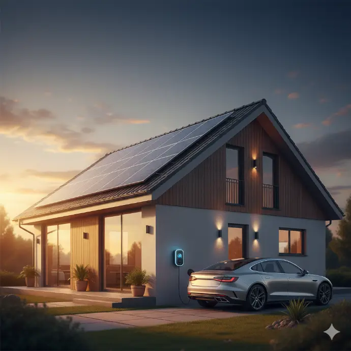 Borne intelligente en mode “surplus” : priorité à l’énergie produite, planification heures creuses et équilibrage avec la maison.